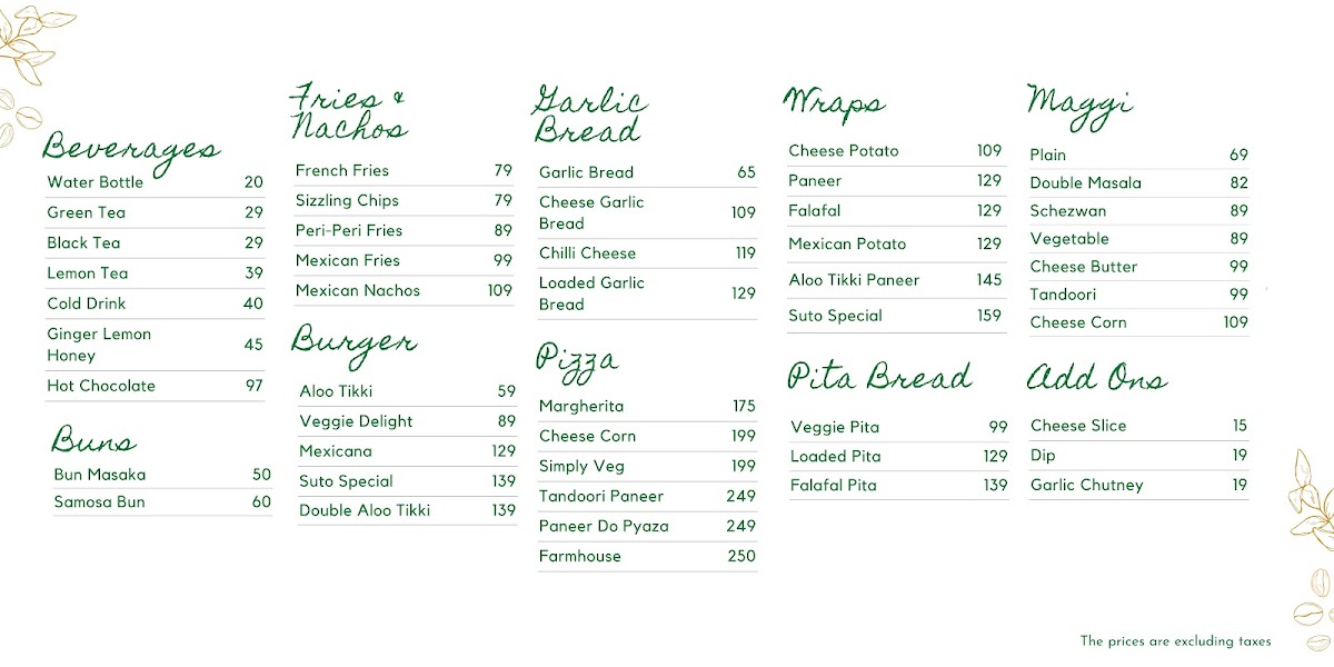 Welcome to Suto Cafe J, an exciting addition to Jammu's cafe culture, located in Bahu Plaza. This charming cafe offers a menu that harmonizes modern trends with local flavors. Their pizzas, such as the classic Margherita for ₹175 and the rich Tandoori Paneer for ₹249, provide a delicious base for food enthusiasts.